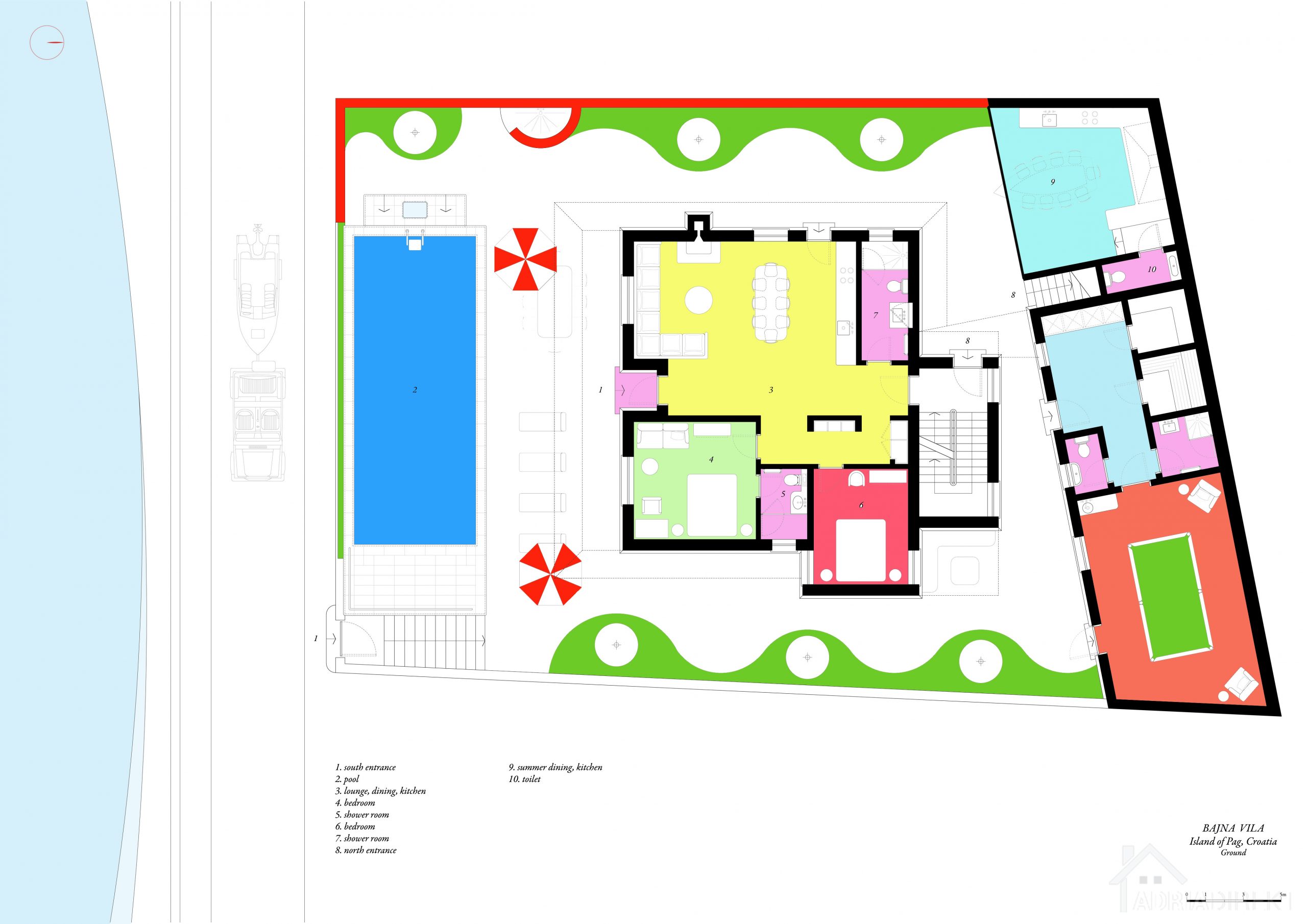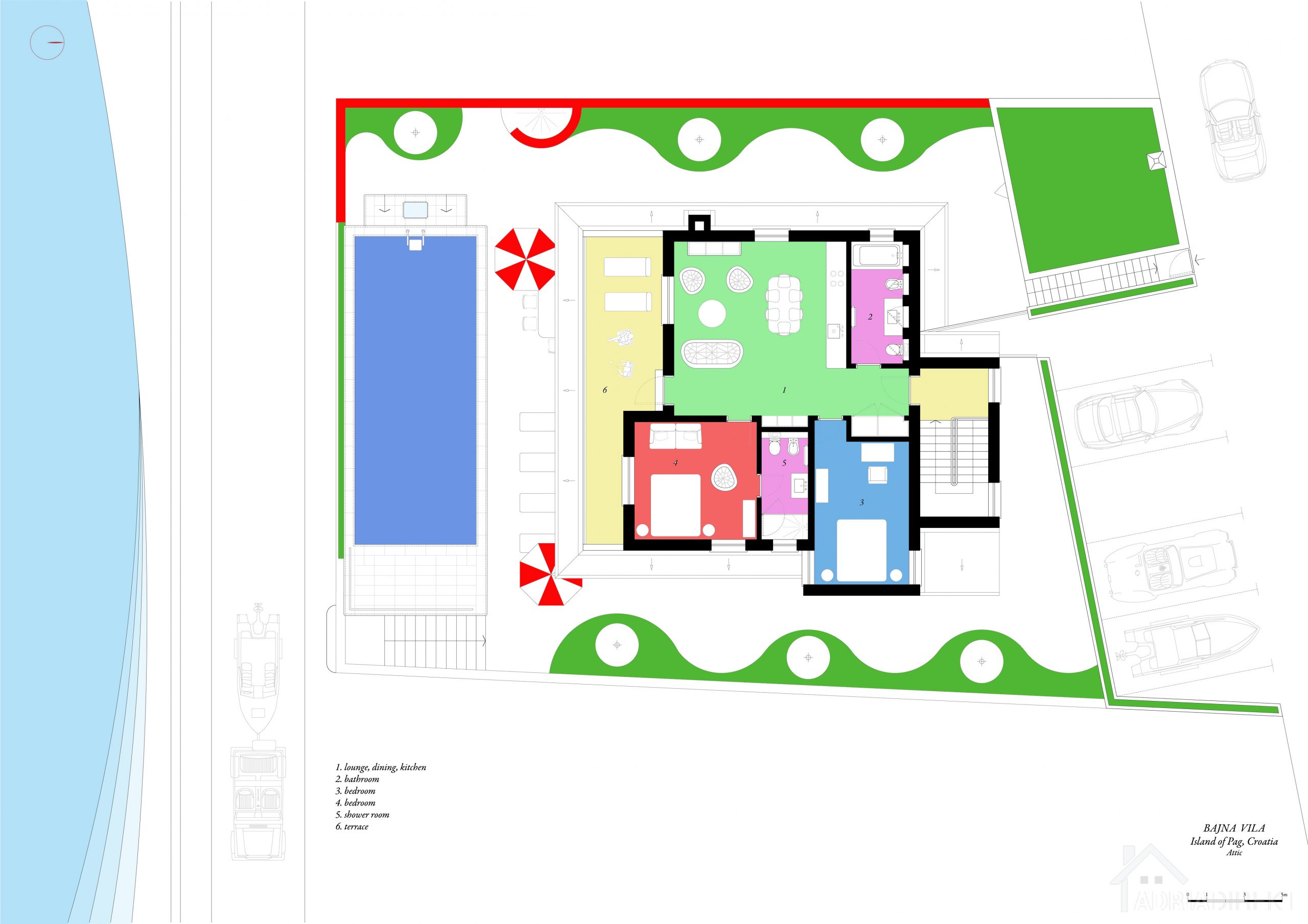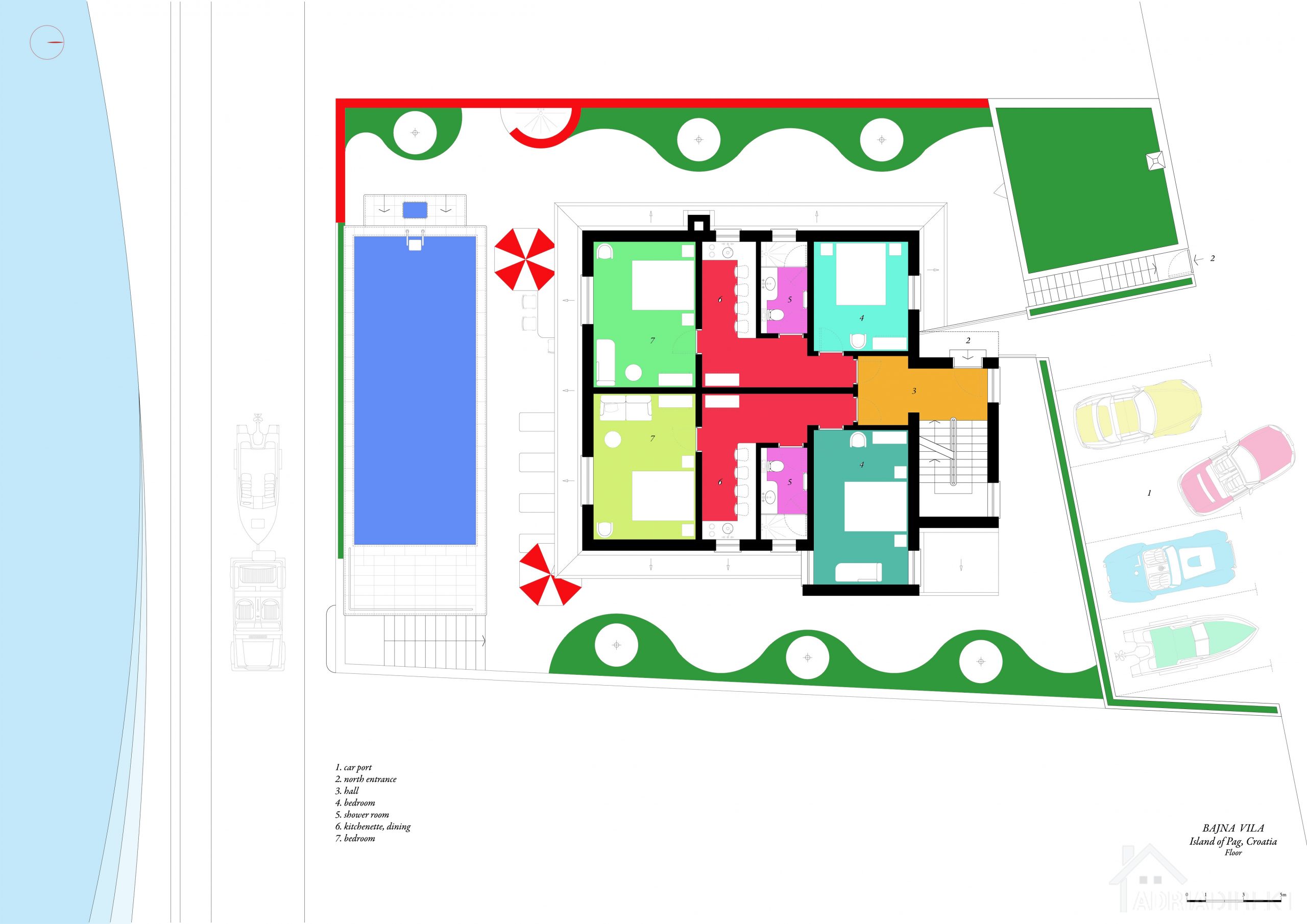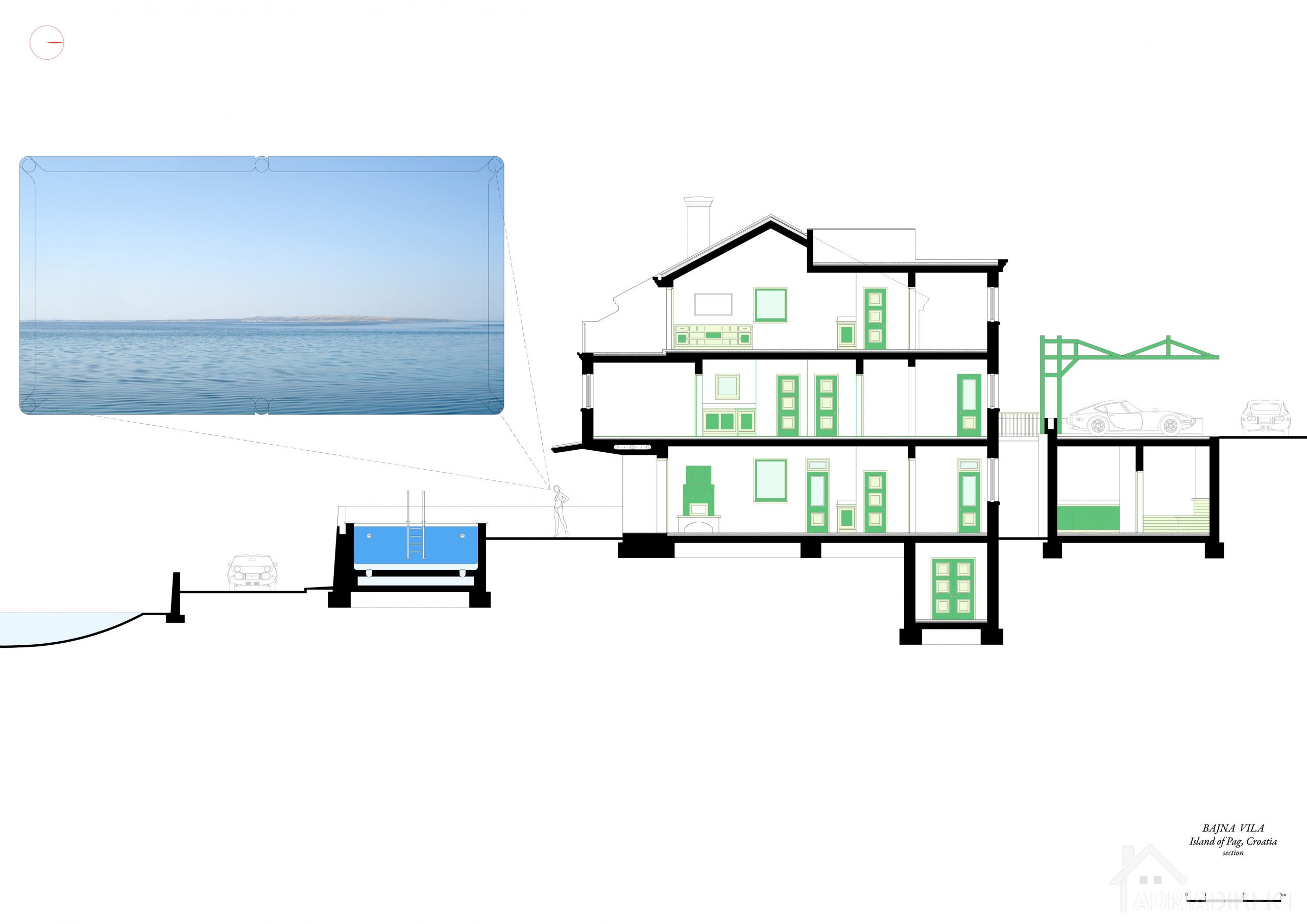Det har en fremragende beliggenhed, kun 5 m fra havet og stranden (første række), tæt på en butik og restauranter. Byen Pag ligger 5 km væk, Novalja og Zrće 15 km og Zadar (lufthavn) 40 km. Košljun er en lille, charmerende landsby på sydsiden af øen Pag, ideel til en rolig ferie, kendt for sin smukke kystlinje, sten- og sandstrande og krystalklare vand.