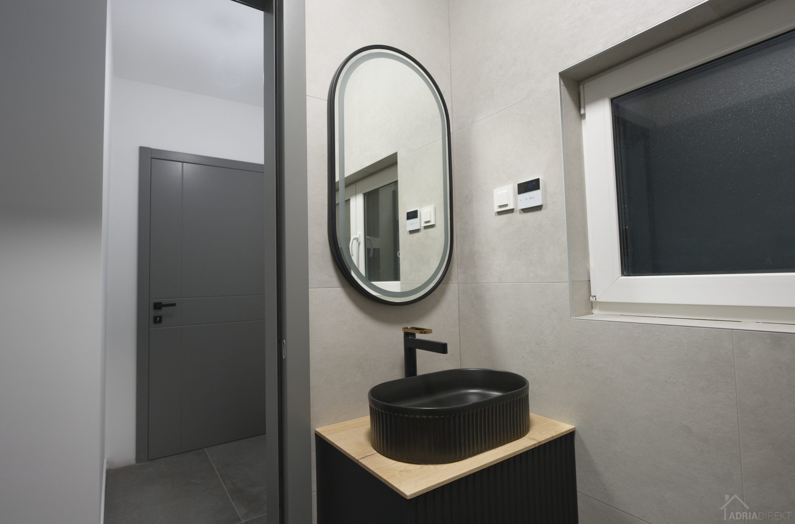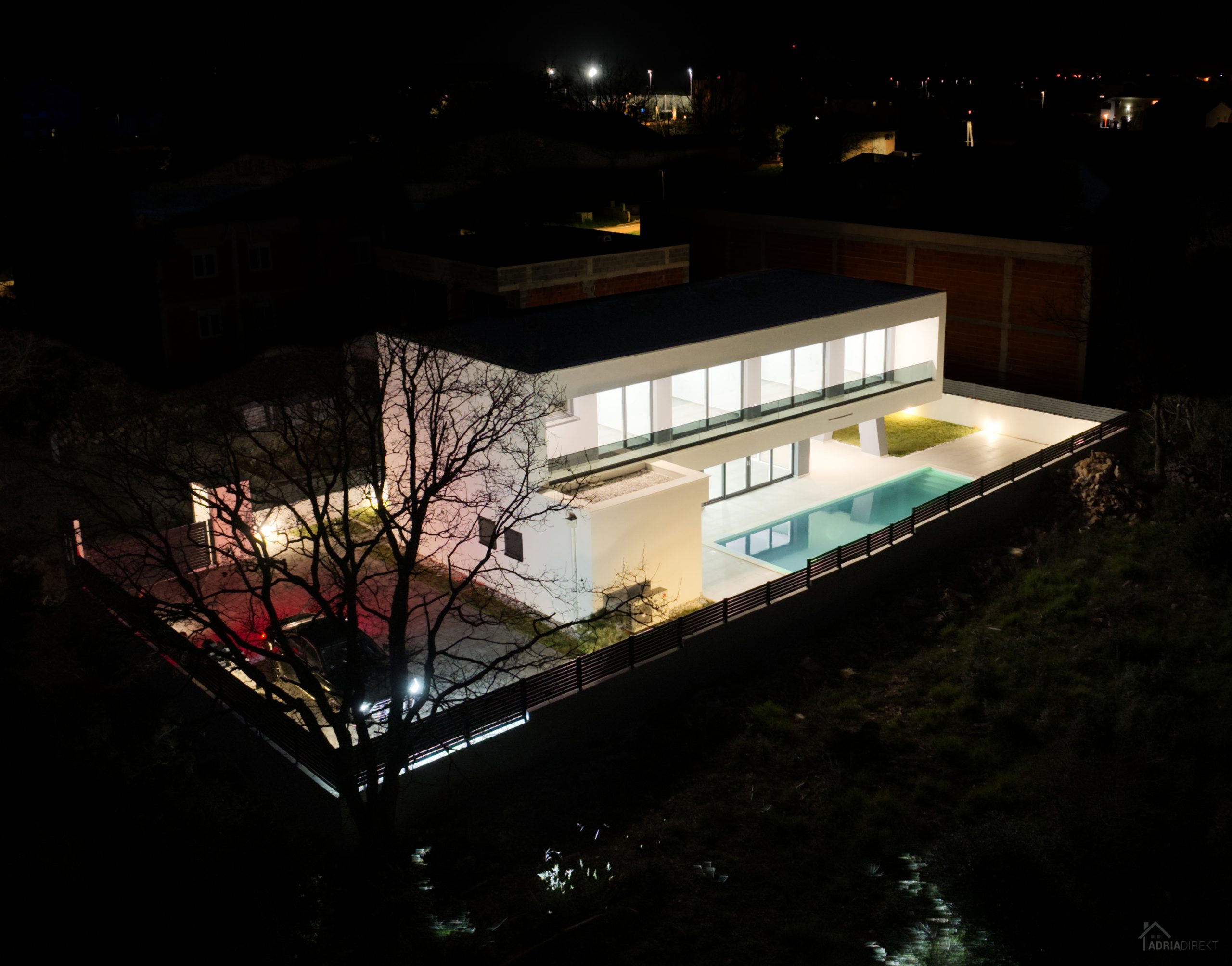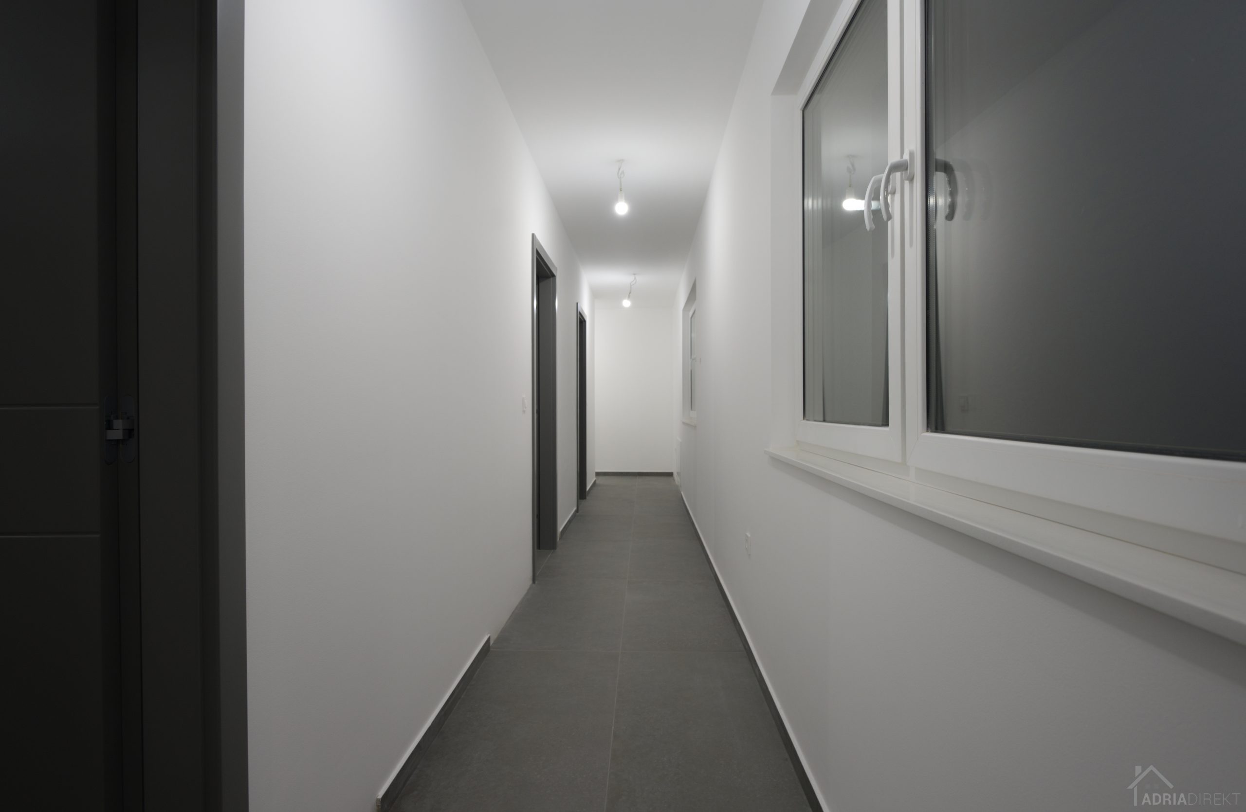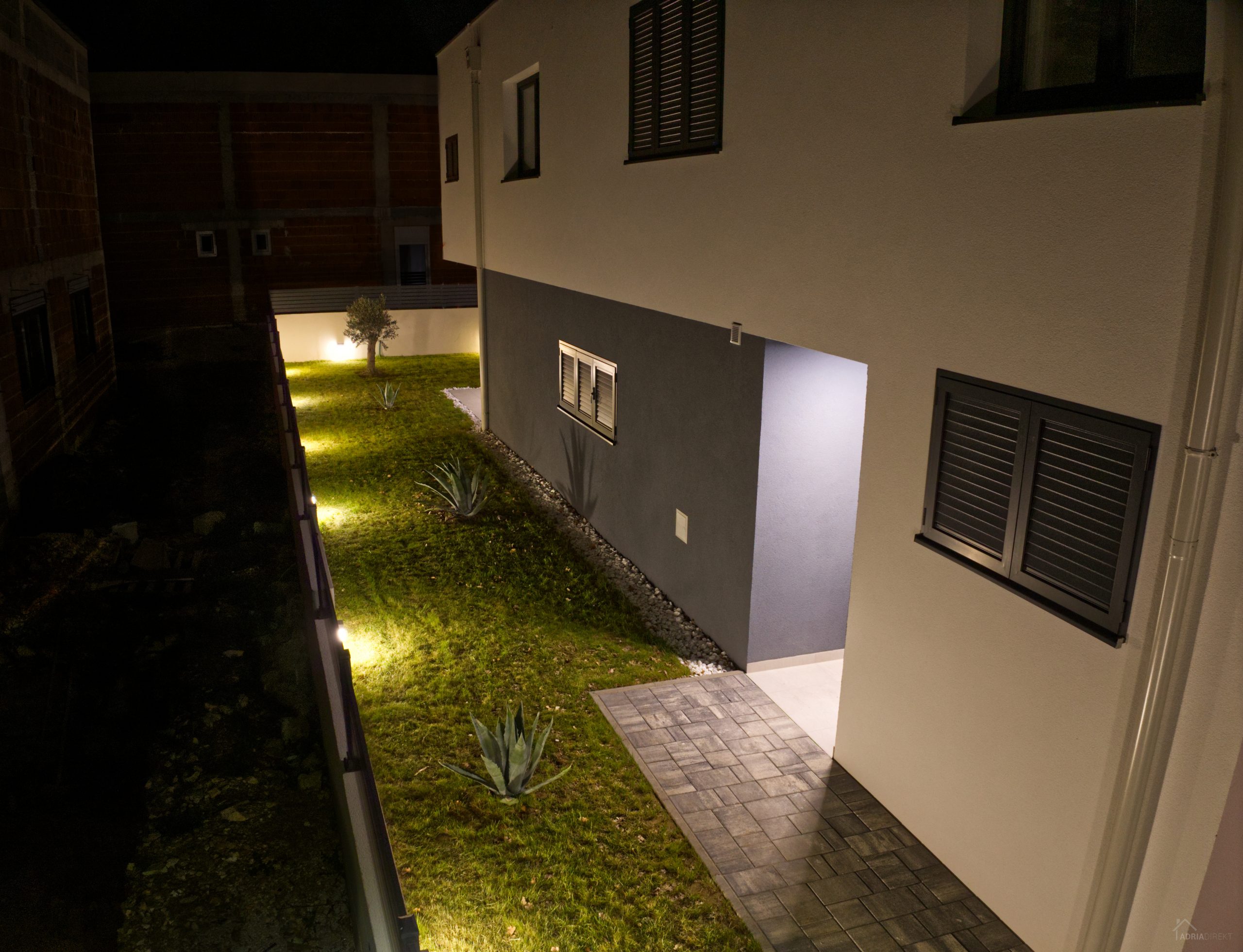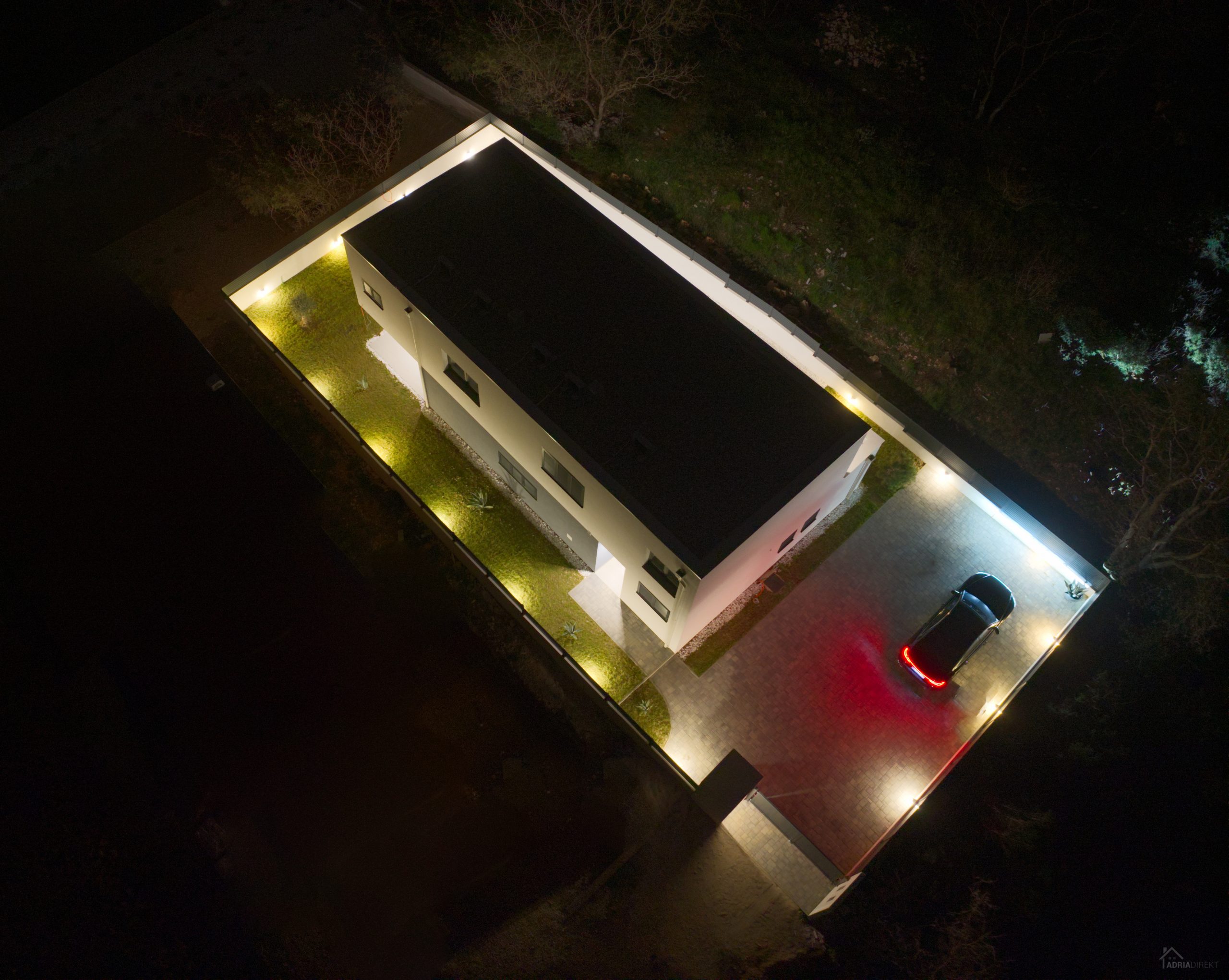 Zadar - Zaton, eksklusivt fritliggende flerfamiliehus med 290 m² boligareal, bygget i 2023 på en grund på 511 m², er til salg. Konstruktion af høj kvalitet, vinduesrammer af aluminium, alle værelser med gulvvarme og aircondition, automatisk kunstvanding af de grønne områder, forberedelse til installation af et solsystem og en ladestation til elbiler osv.
