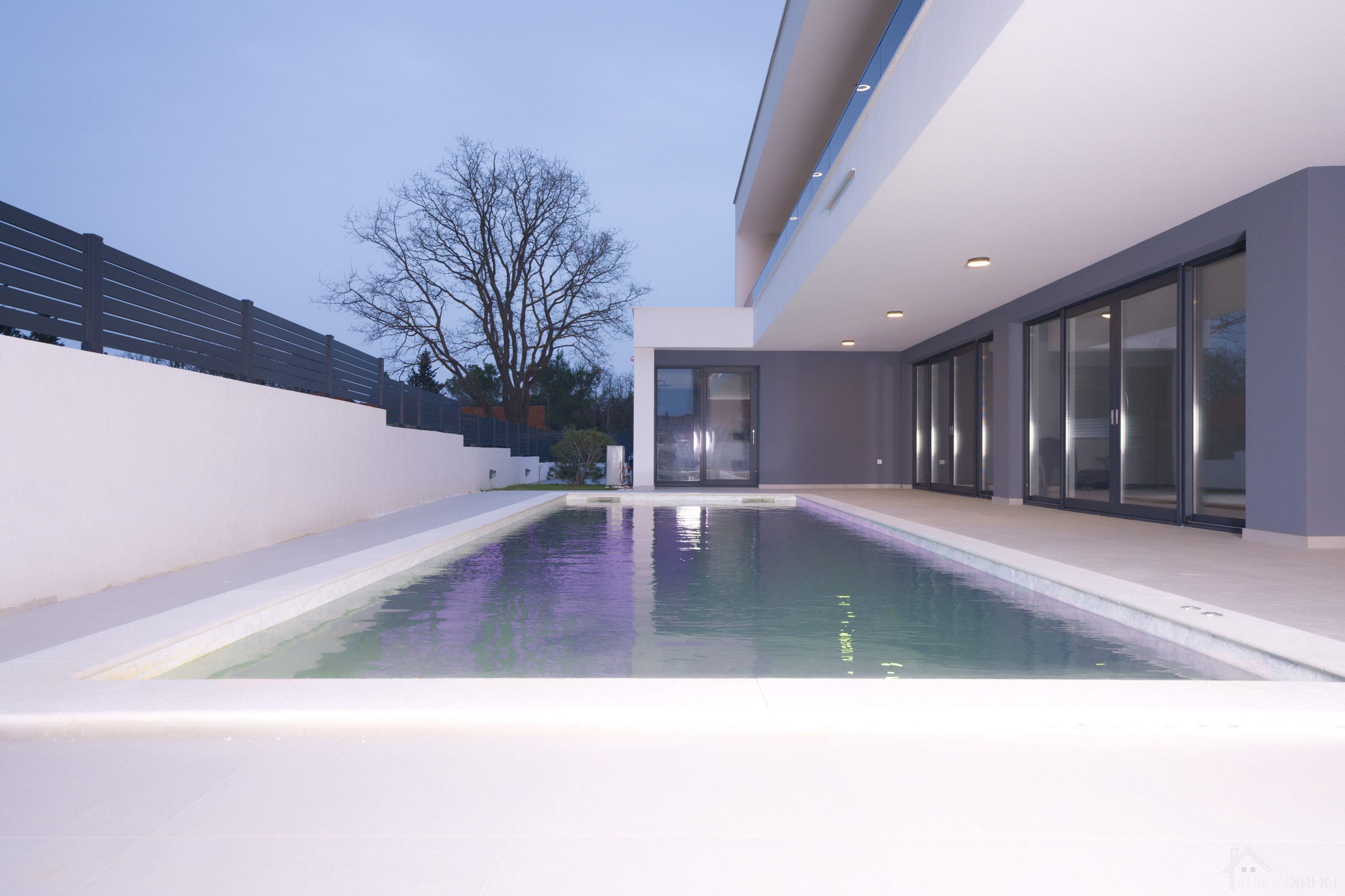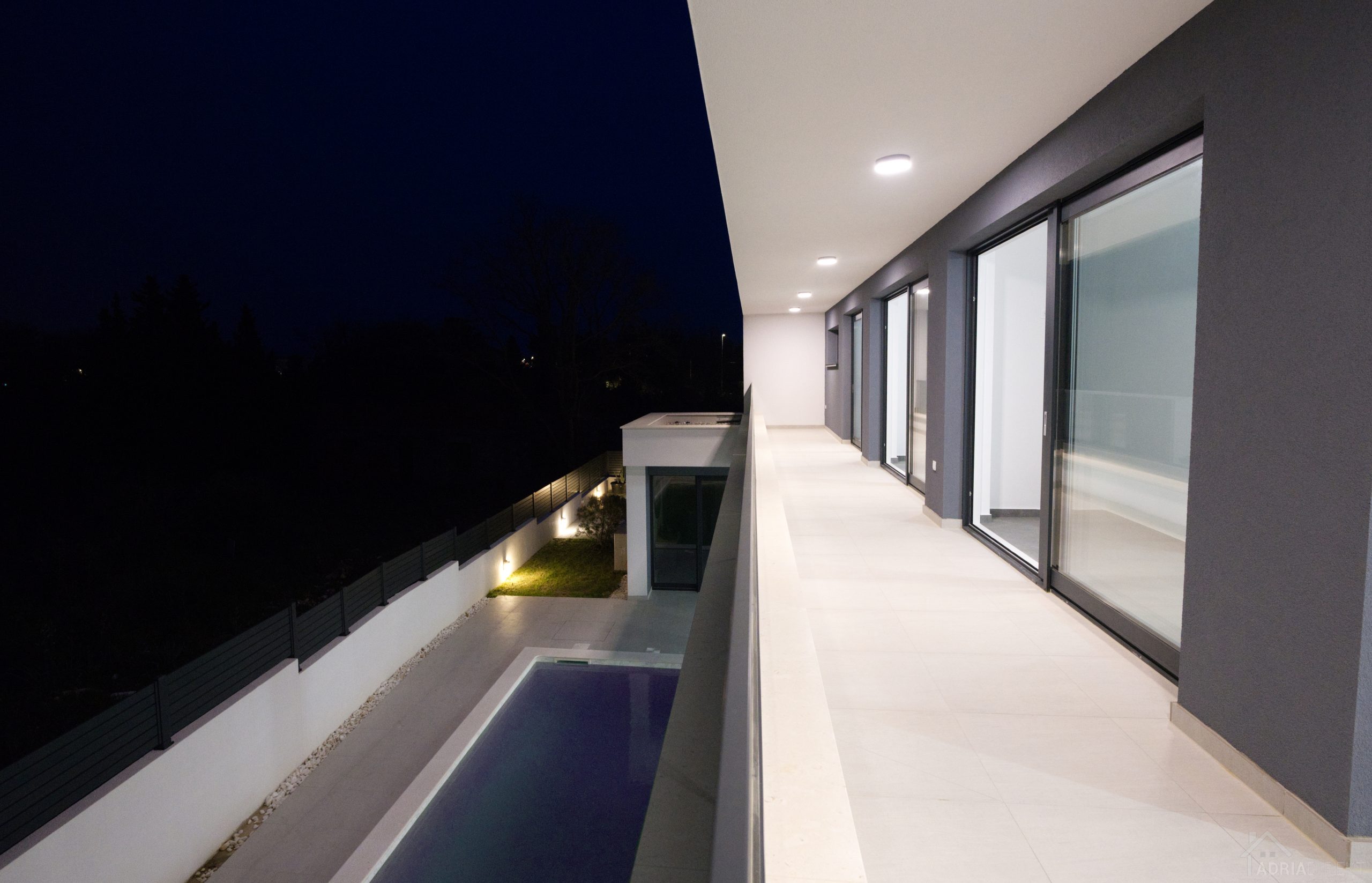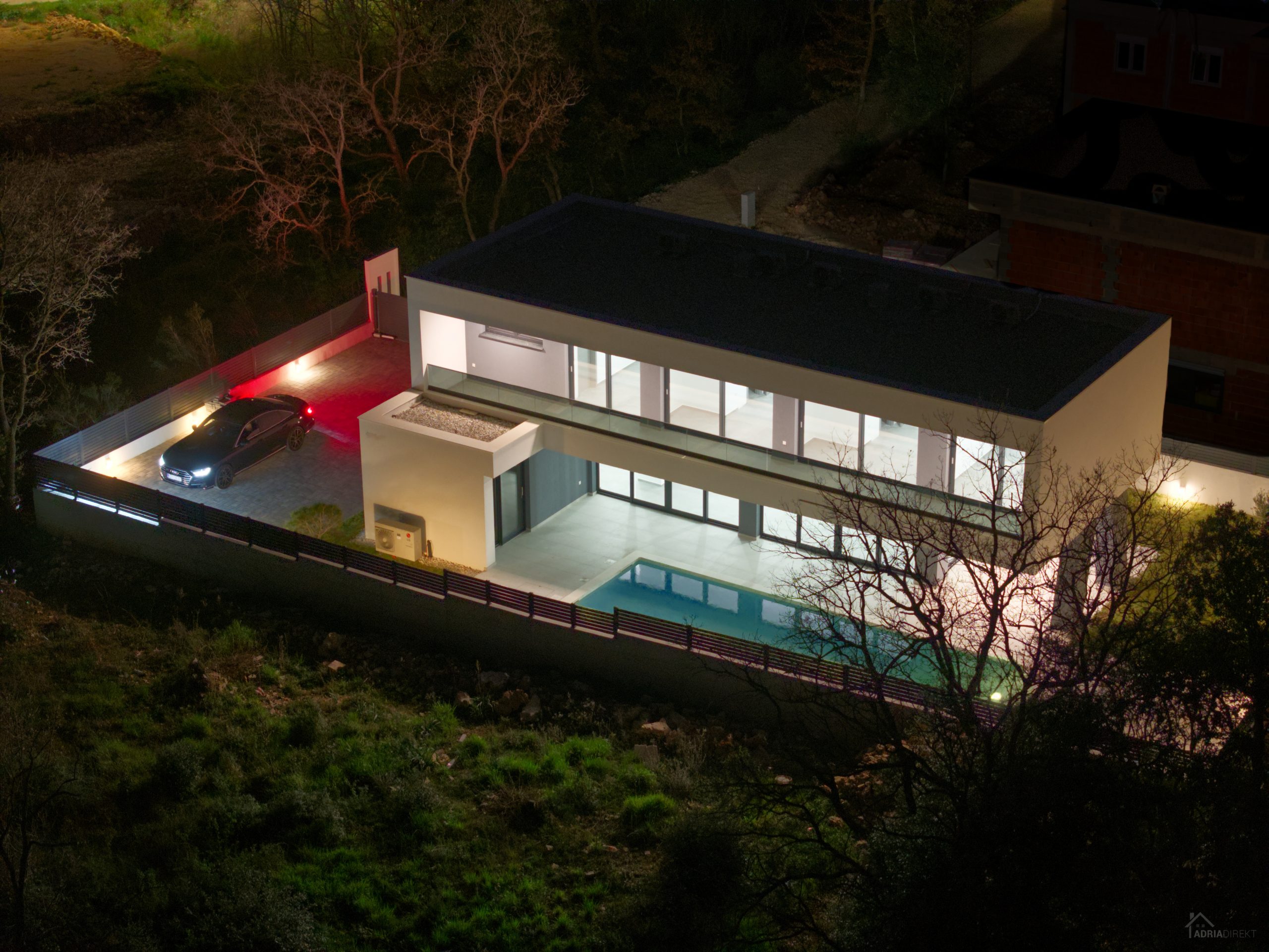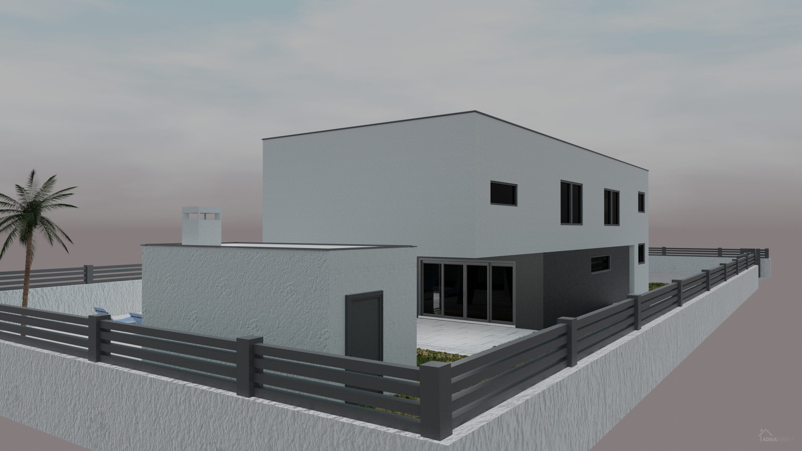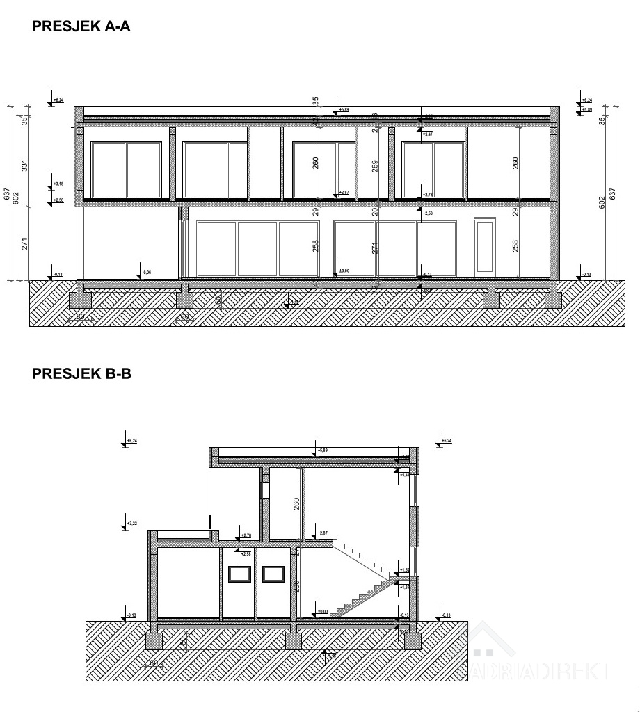 Zadar - Zaton, eksklusivt fritliggende flerfamiliehus med 290 m² boligareal, bygget i 2023 på en grund på 511 m², er til salg. Konstruktion af høj kvalitet, vinduesrammer af aluminium, alle værelser med gulvvarme og aircondition, automatisk kunstvanding af de grønne områder, forberedelse til installation af et solsystem og en ladestation til elbiler osv.