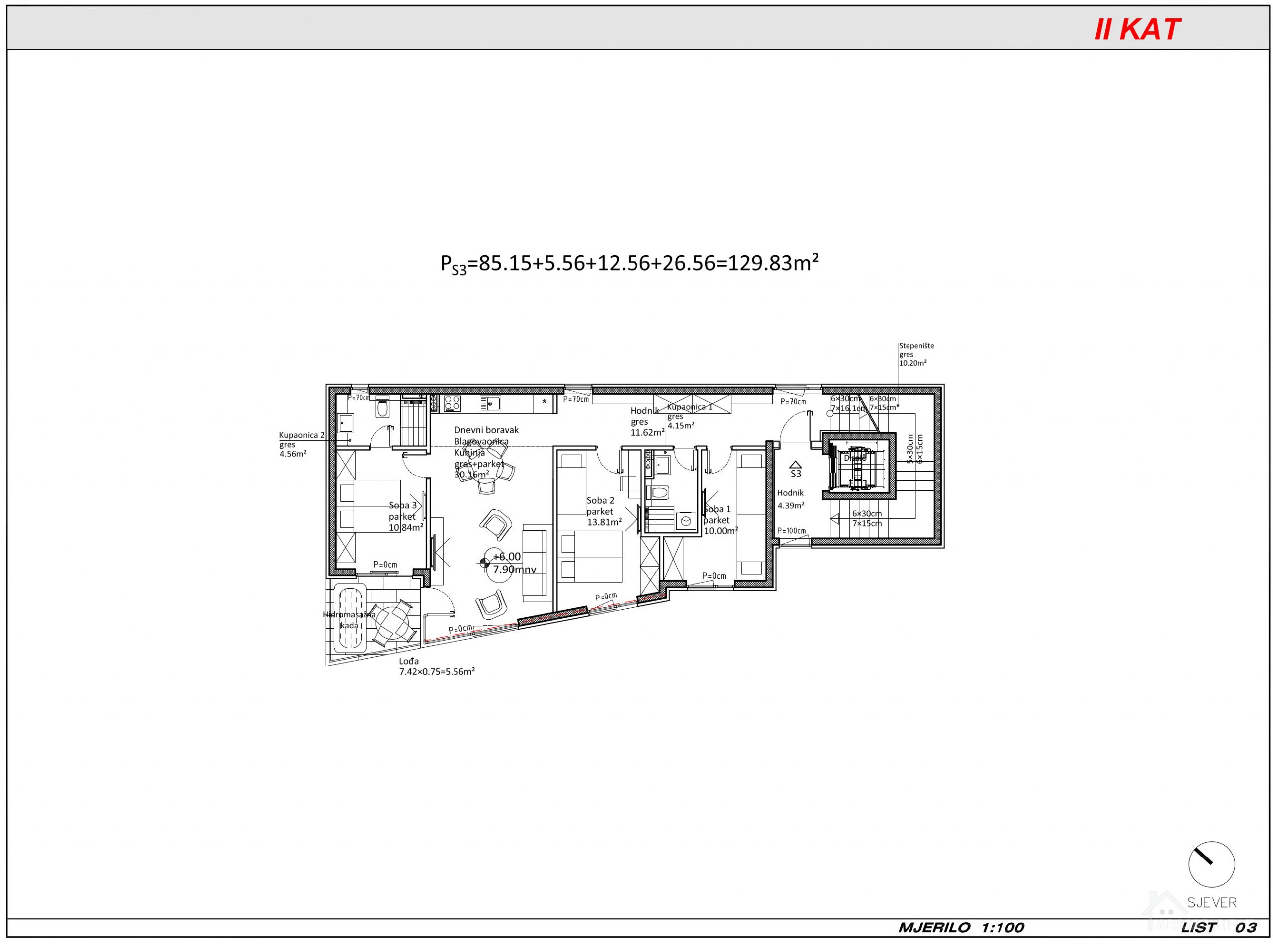 Zadar - Sukošanna sprzedaż jest apartament trzypokojowy z 132.32 m² na drugim piętrze budowanego budynku mieszkalnego z łącznie sześcioma mieszkaniami, wysokiej jakości wykonanie. Planowane zakończenie: 05/2026.