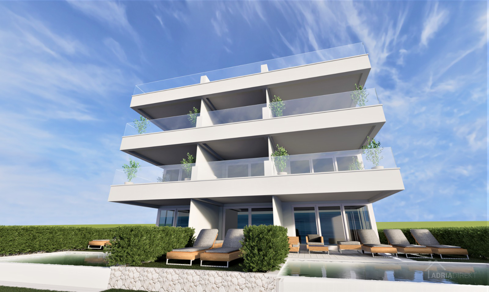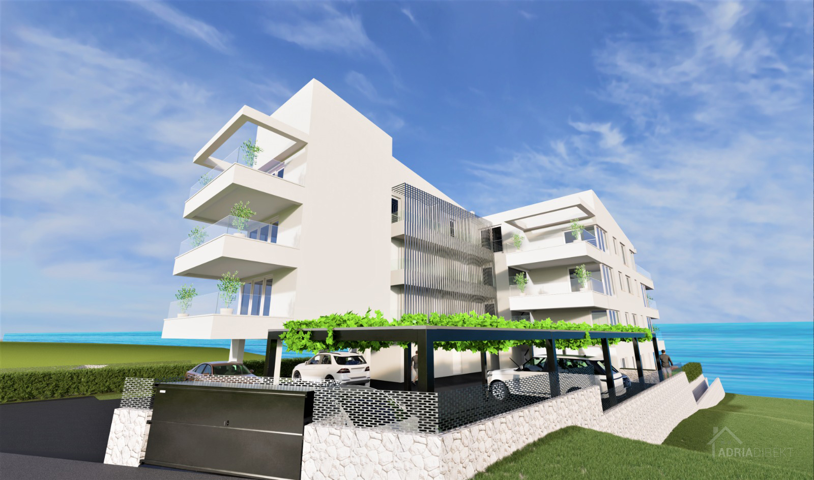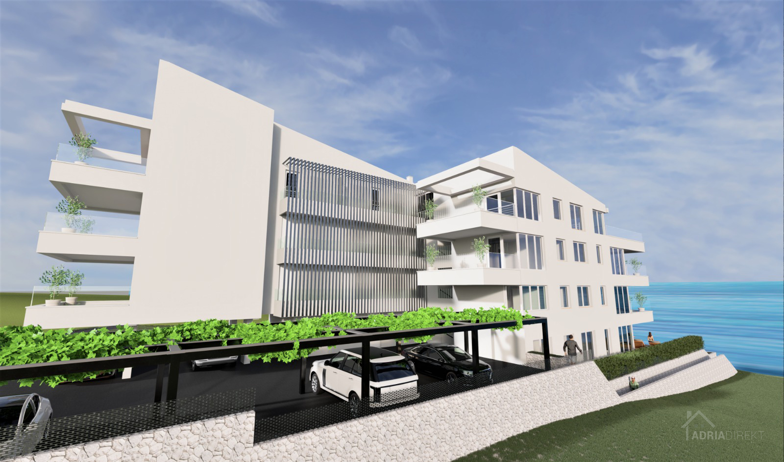 Pag – Povljana, for sale is a luxurious two-bedroom apartment with 105.88 m² on the ground floor of a residential building built in 2022 with a total of fourteen apartments, high-quality construction.