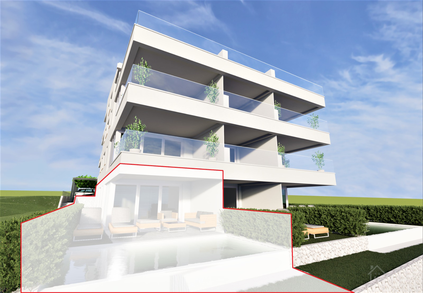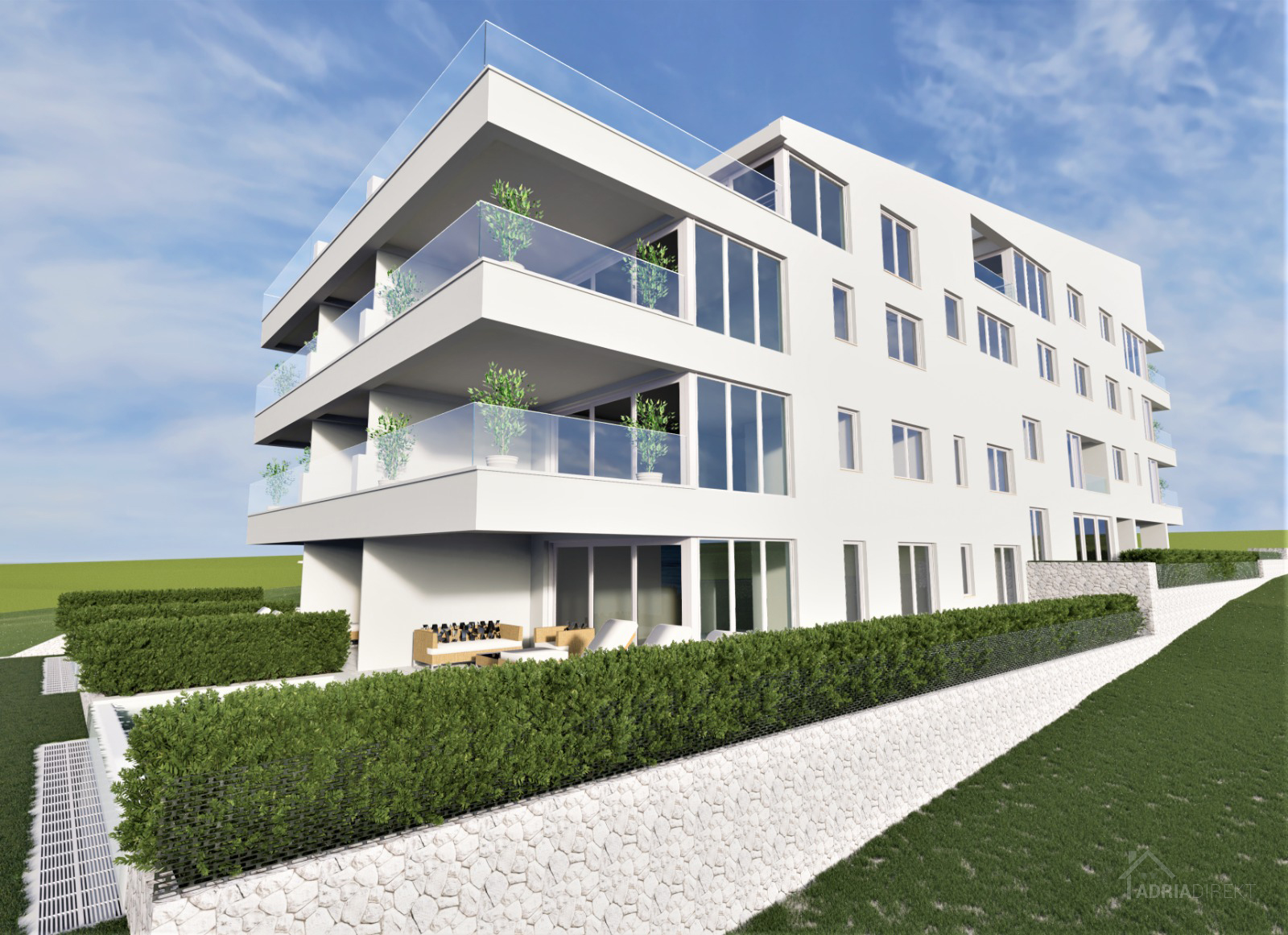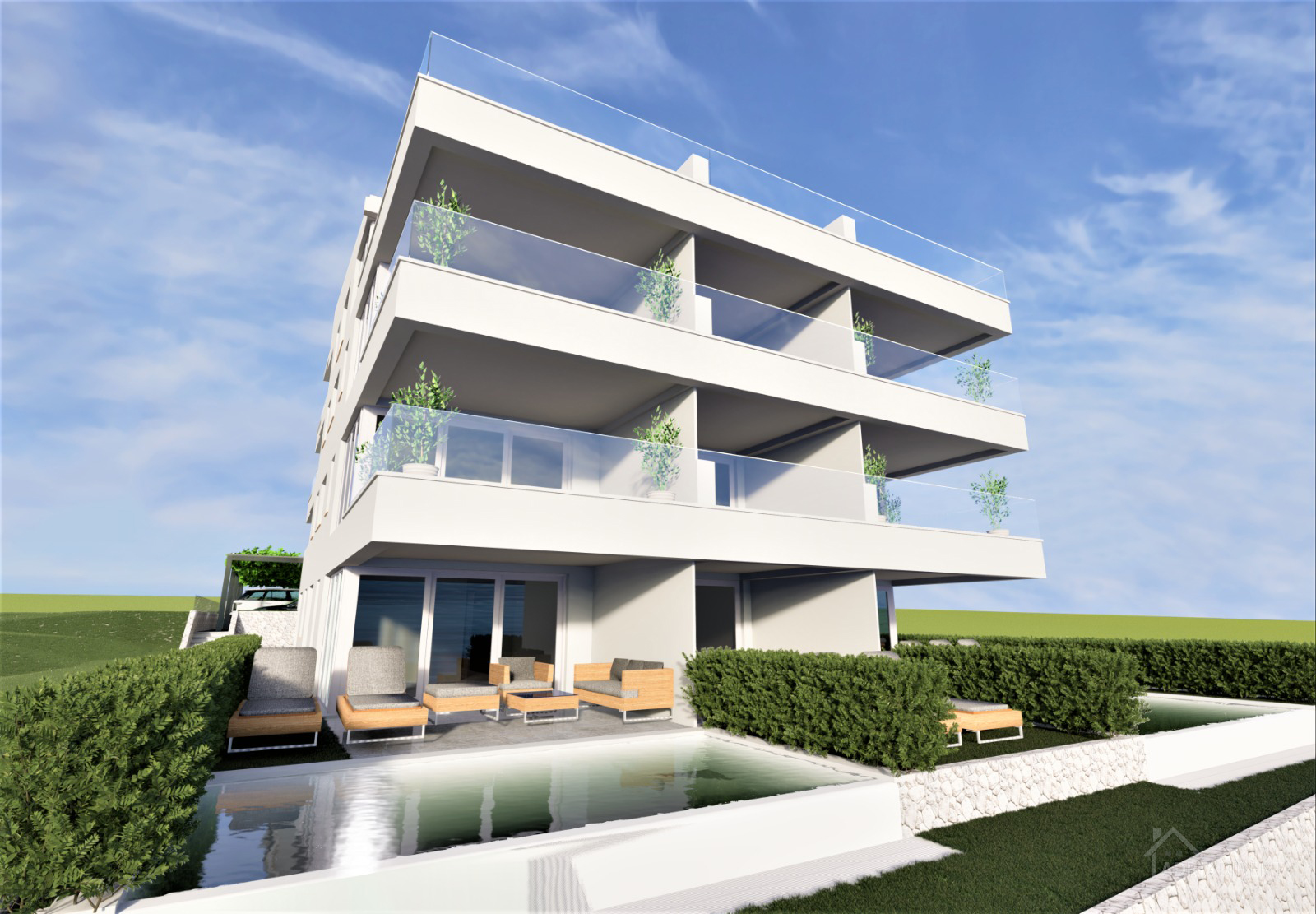 Pag – Povljana, for sale is a luxurious two-bedroom apartment with 105.88 m² on the ground floor of a residential building built in 2022 with a total of fourteen apartments, high-quality construction.