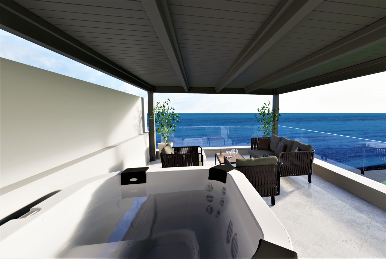 Exclusive three-room apartment with sea view, roof terrace, and pool – Zaton
