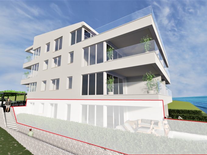 Luxurious 2-room apartment with sea view and large roof terrace in Mandre – completion end of 2024!