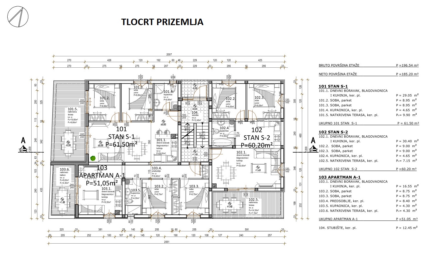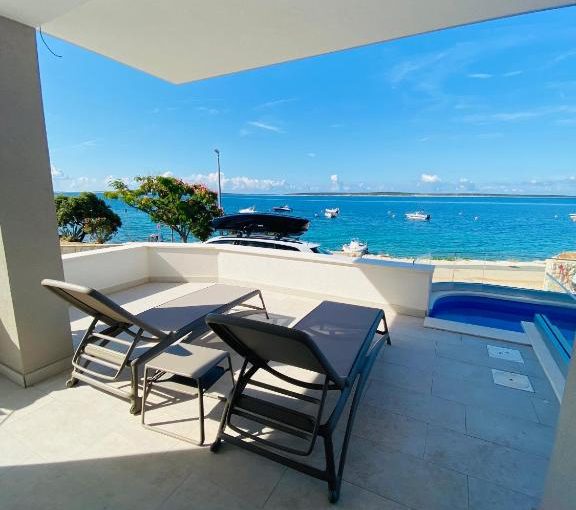 Pag – Mandre, for sale is a two-room apartment with 68.55 m² on the ground floor of a residential building under construction with a total of nine apartments, high-quality construction. Planned move-in date is December 31, 2024.