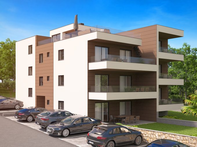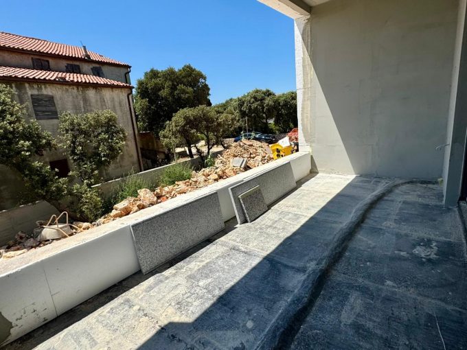 Pag – Mandre, for sale is a two-room apartment with 68.45 m² on the first floor of a residential building under construction with a total of nine apartments. High-quality construction, planned move-in date December 31, 2024.