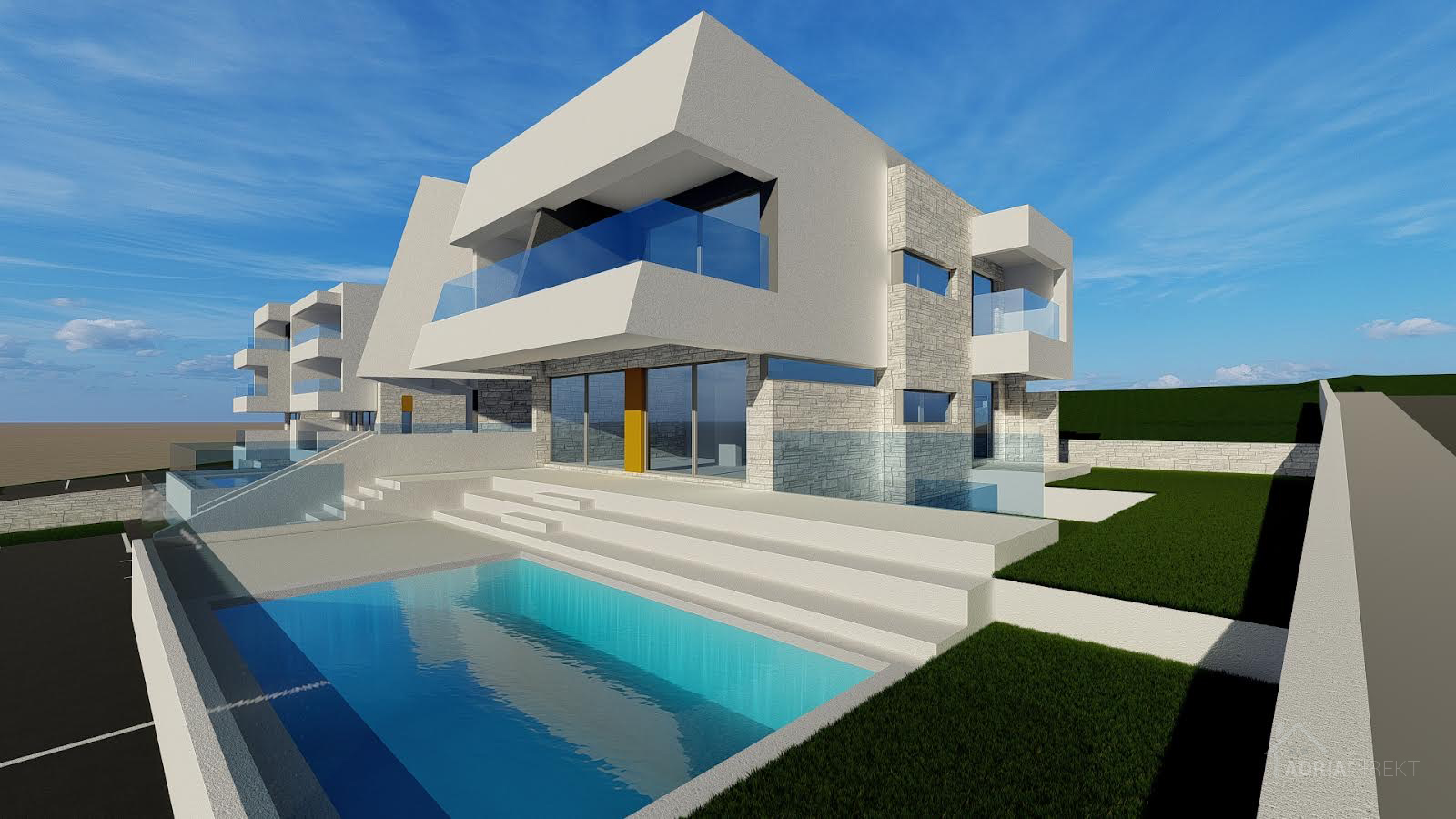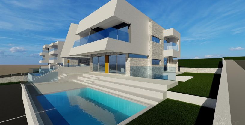 Novalja, for sale is a luxurious semi-detached house with two floors, a living area of 319 m², and a garden of 120 m², built in 2023. The villa offers high-quality construction and is fully furnished.