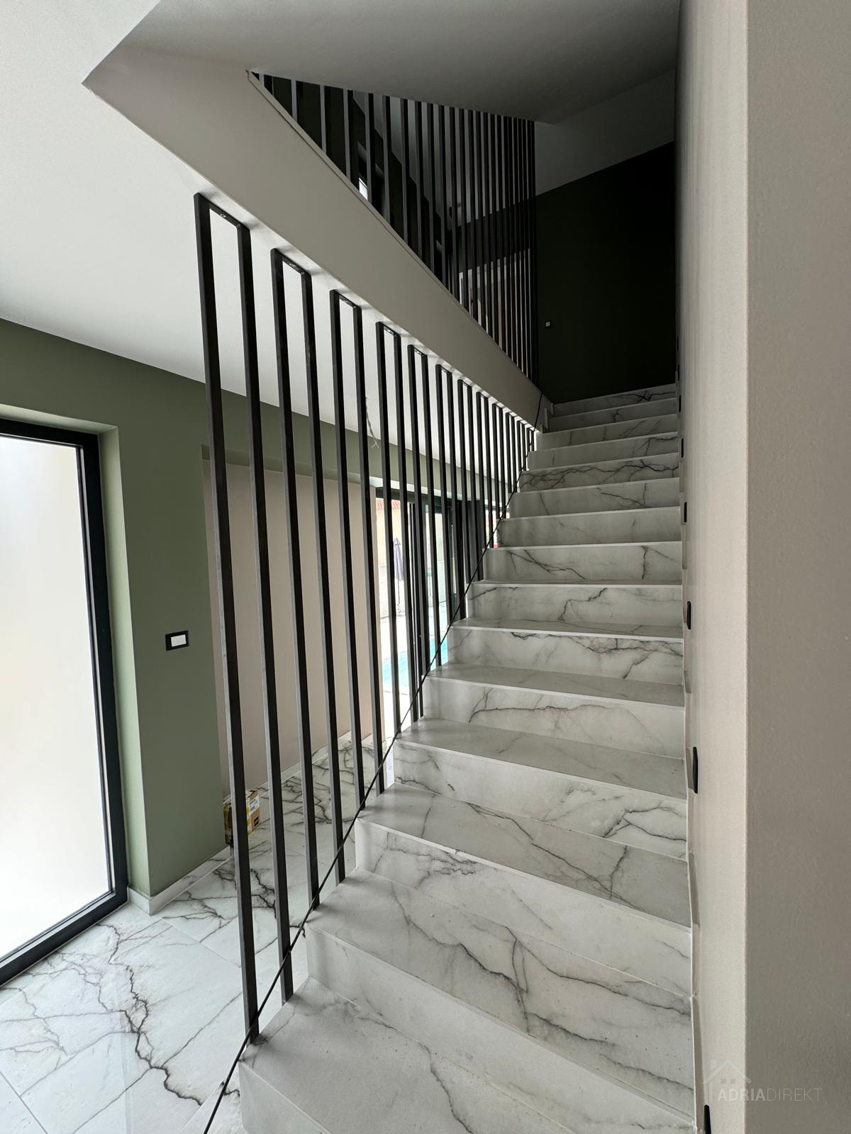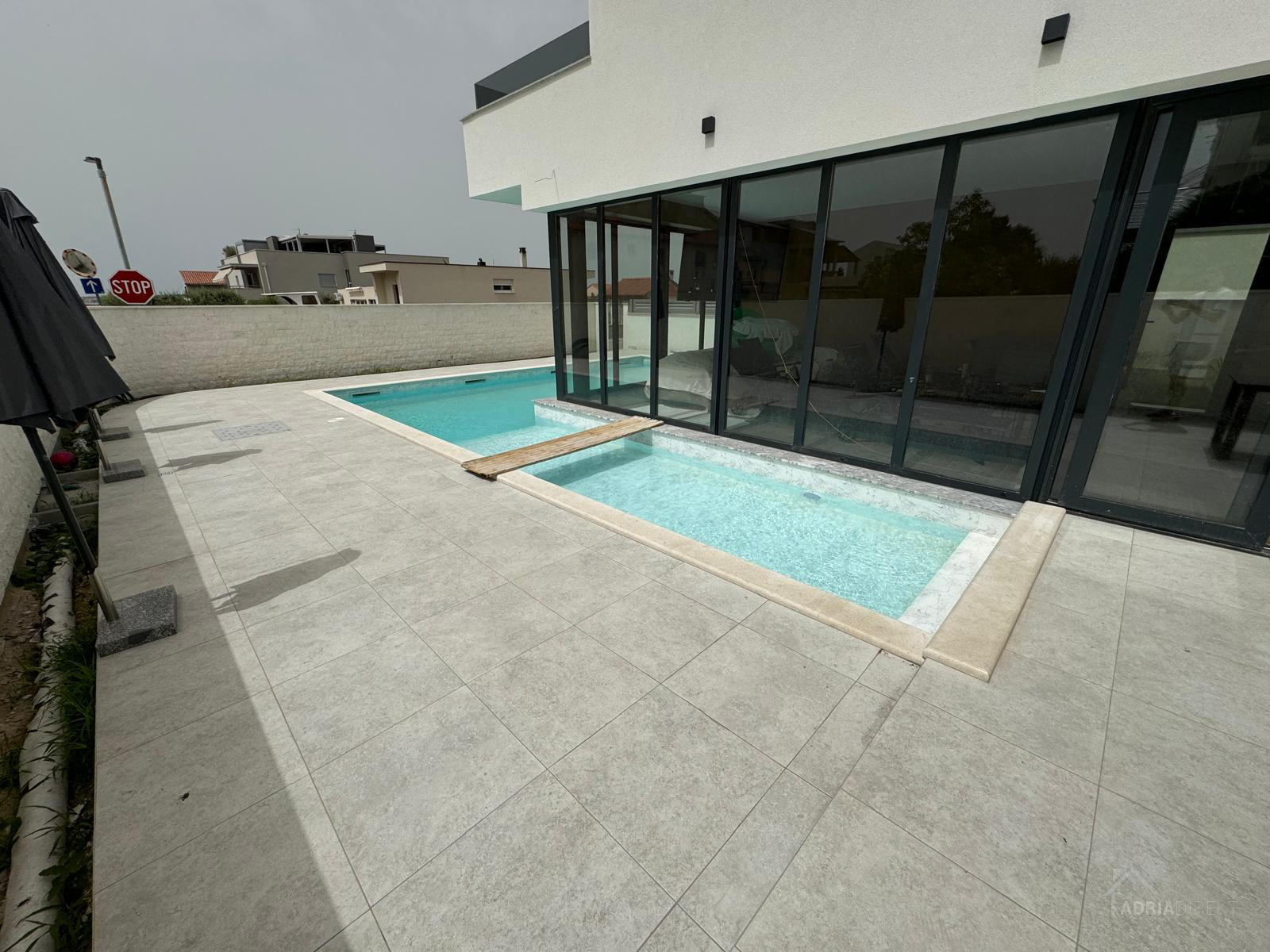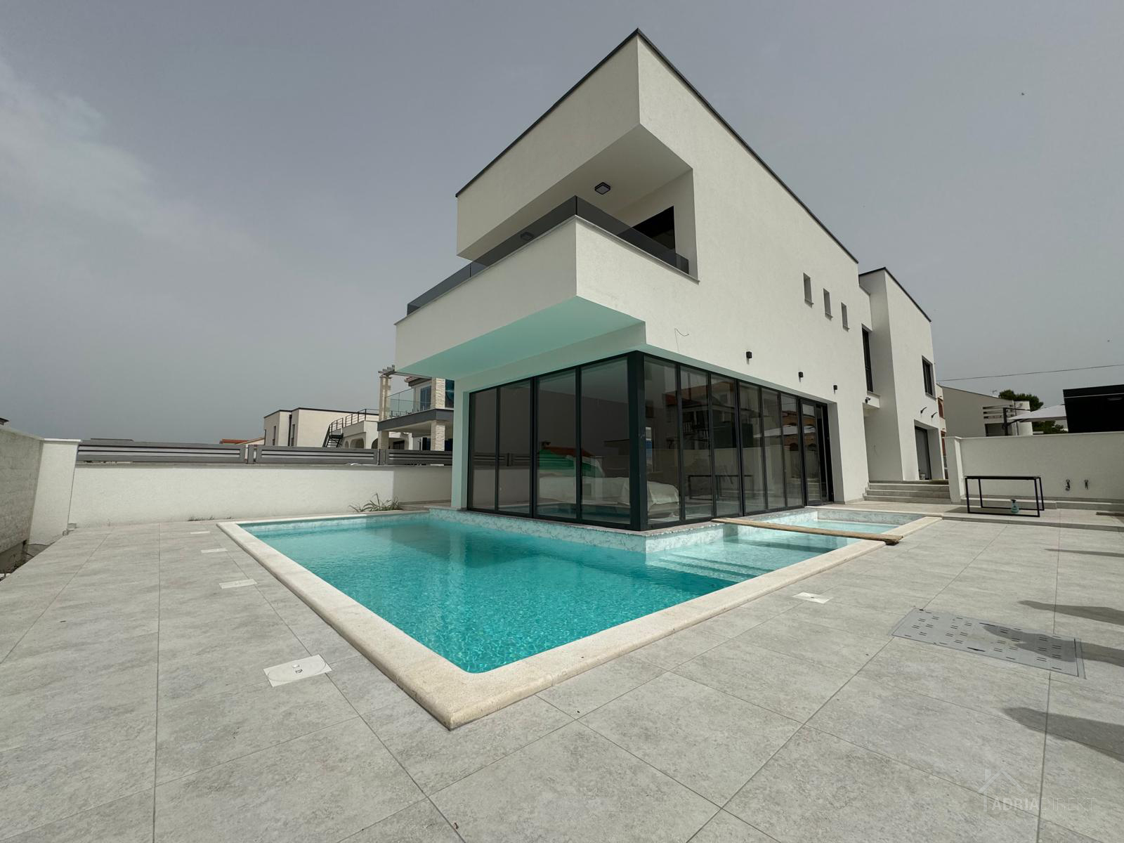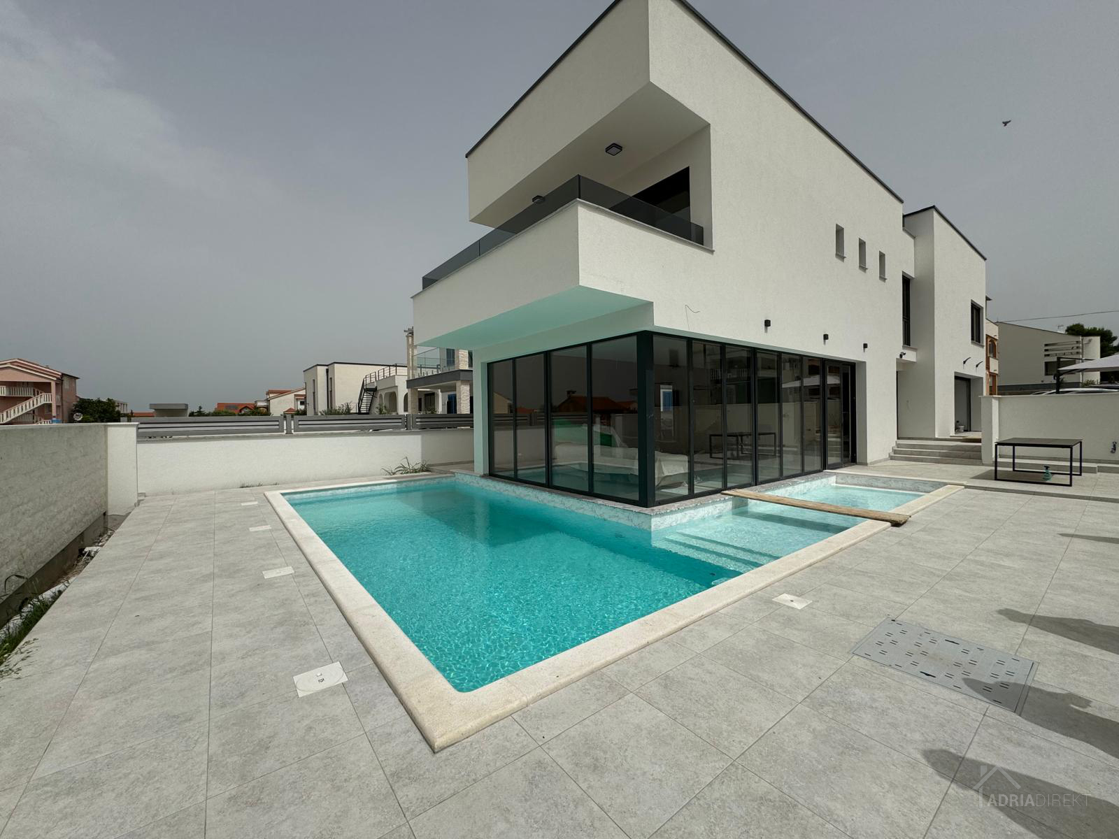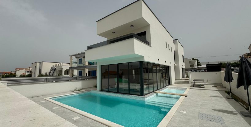 Zadar – Vrsi (Mulo), a detached villa with two floors and a living area of 262 m² is for sale, built on a plot of 411 m² in 2023. The villa offers high-quality construction.