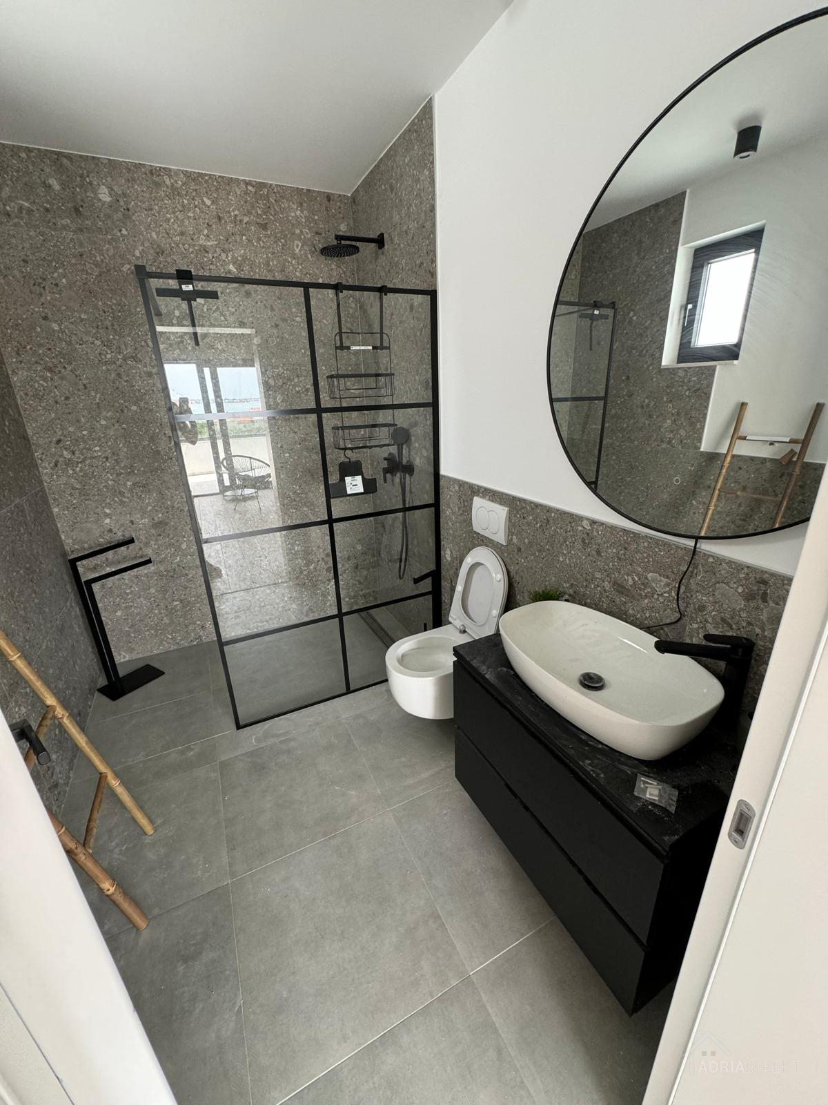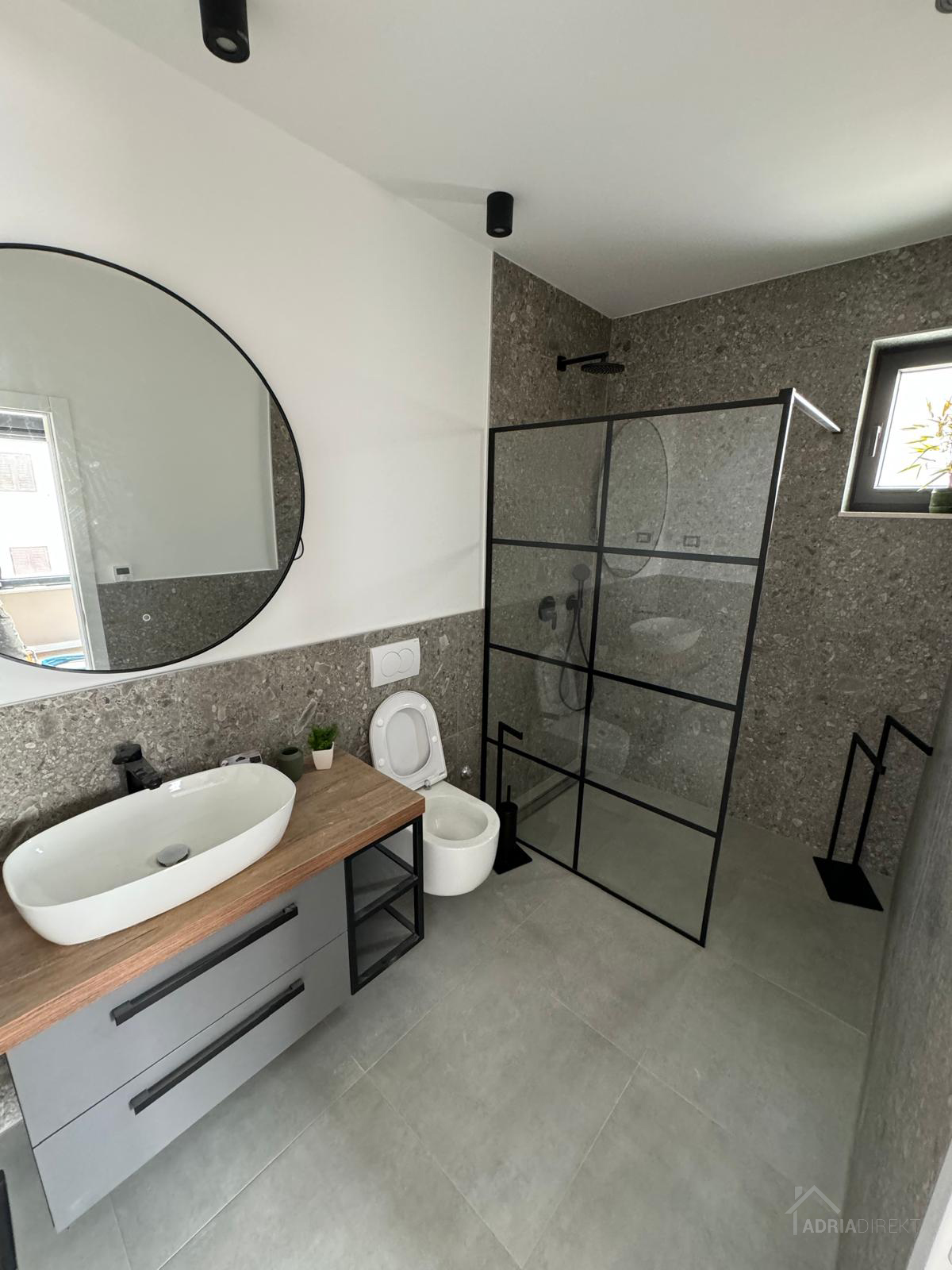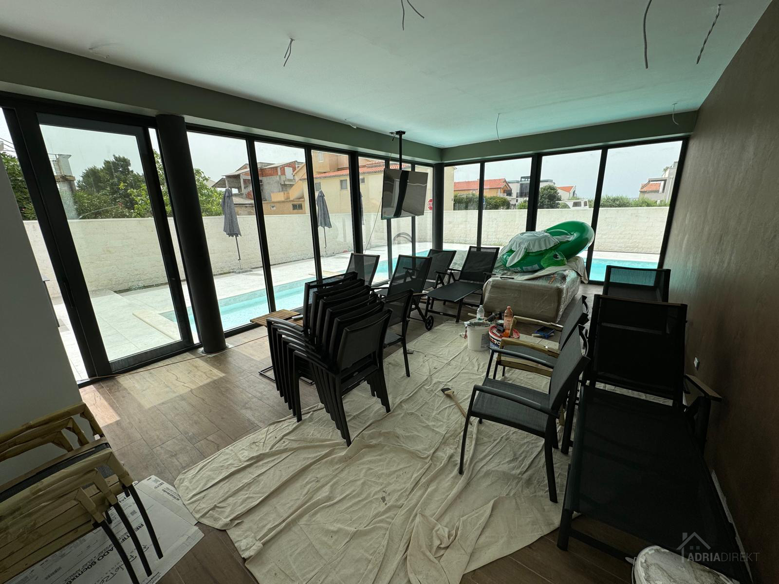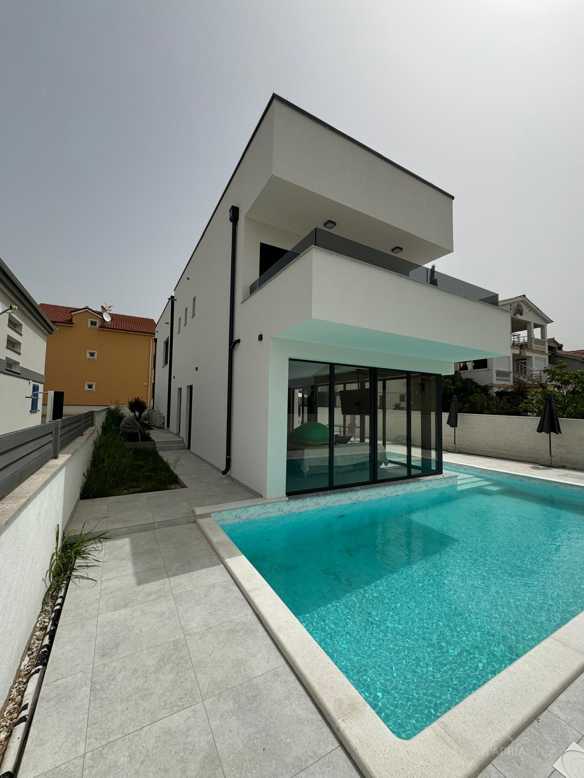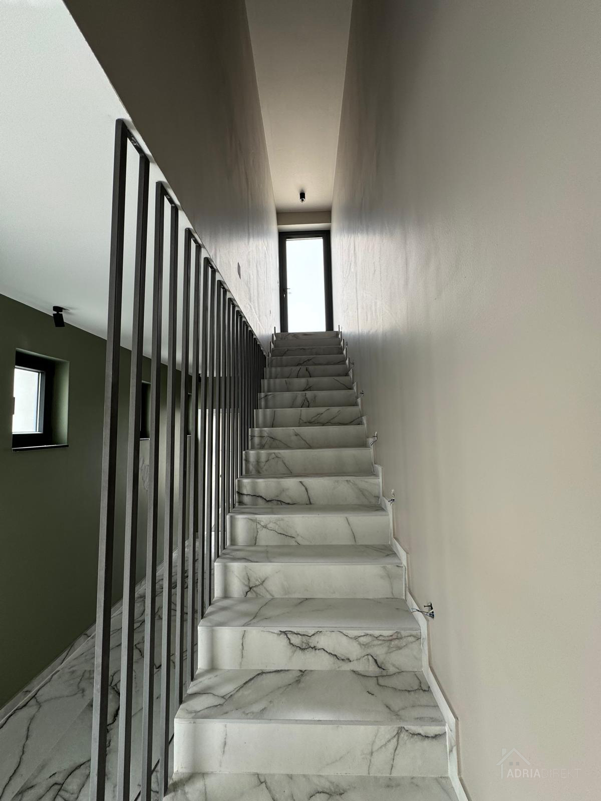 Zadar – Vrsi (Mulo), a detached villa with two floors and a living area of 262 m² is for sale, built on a plot of 411 m² in 2023. The villa offers high-quality construction.