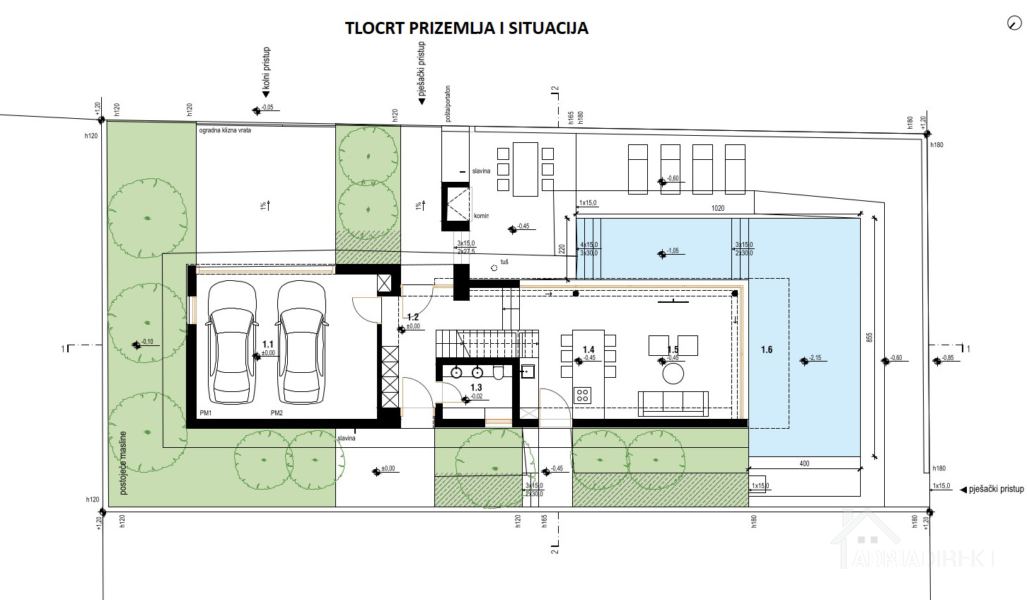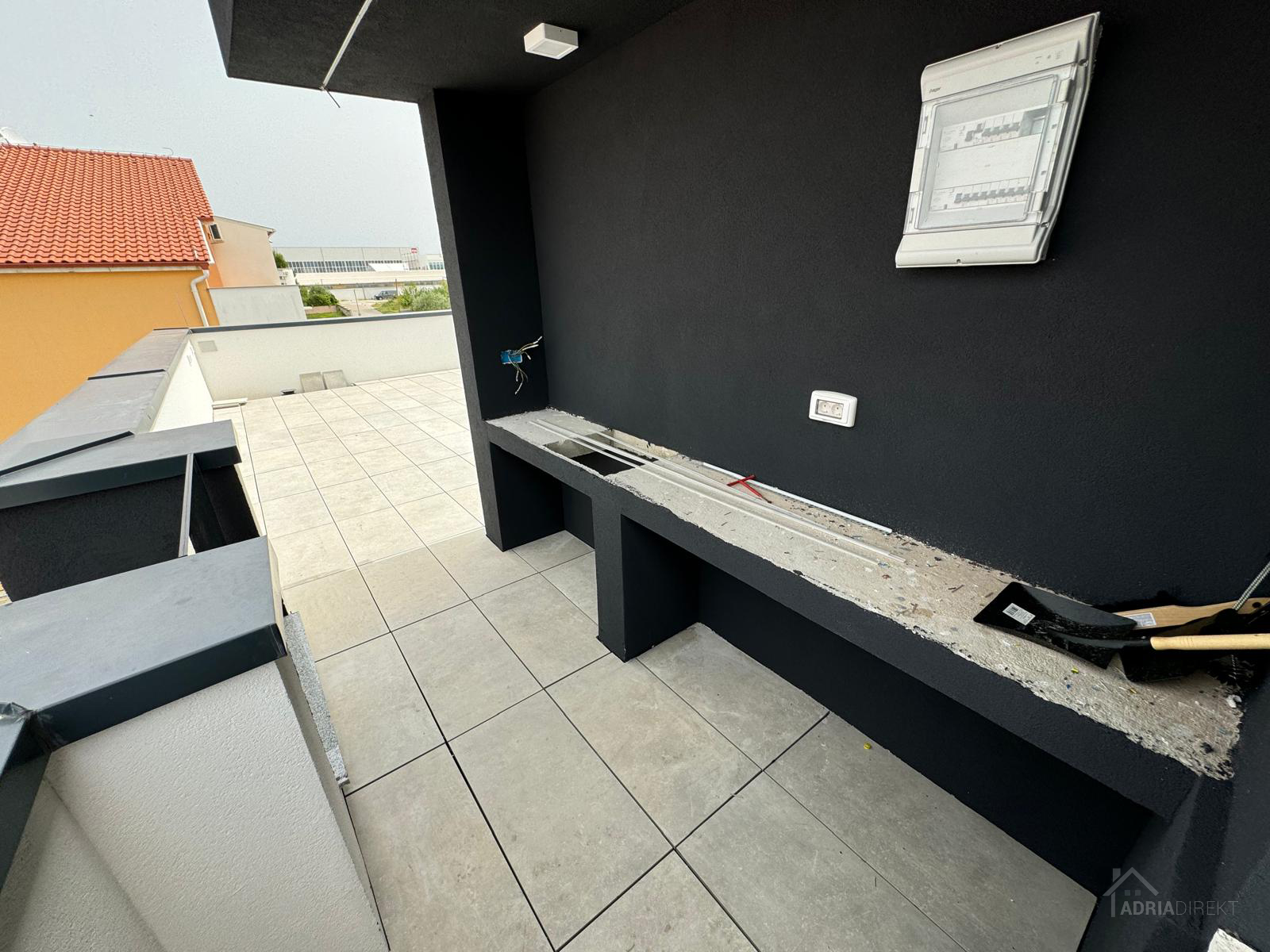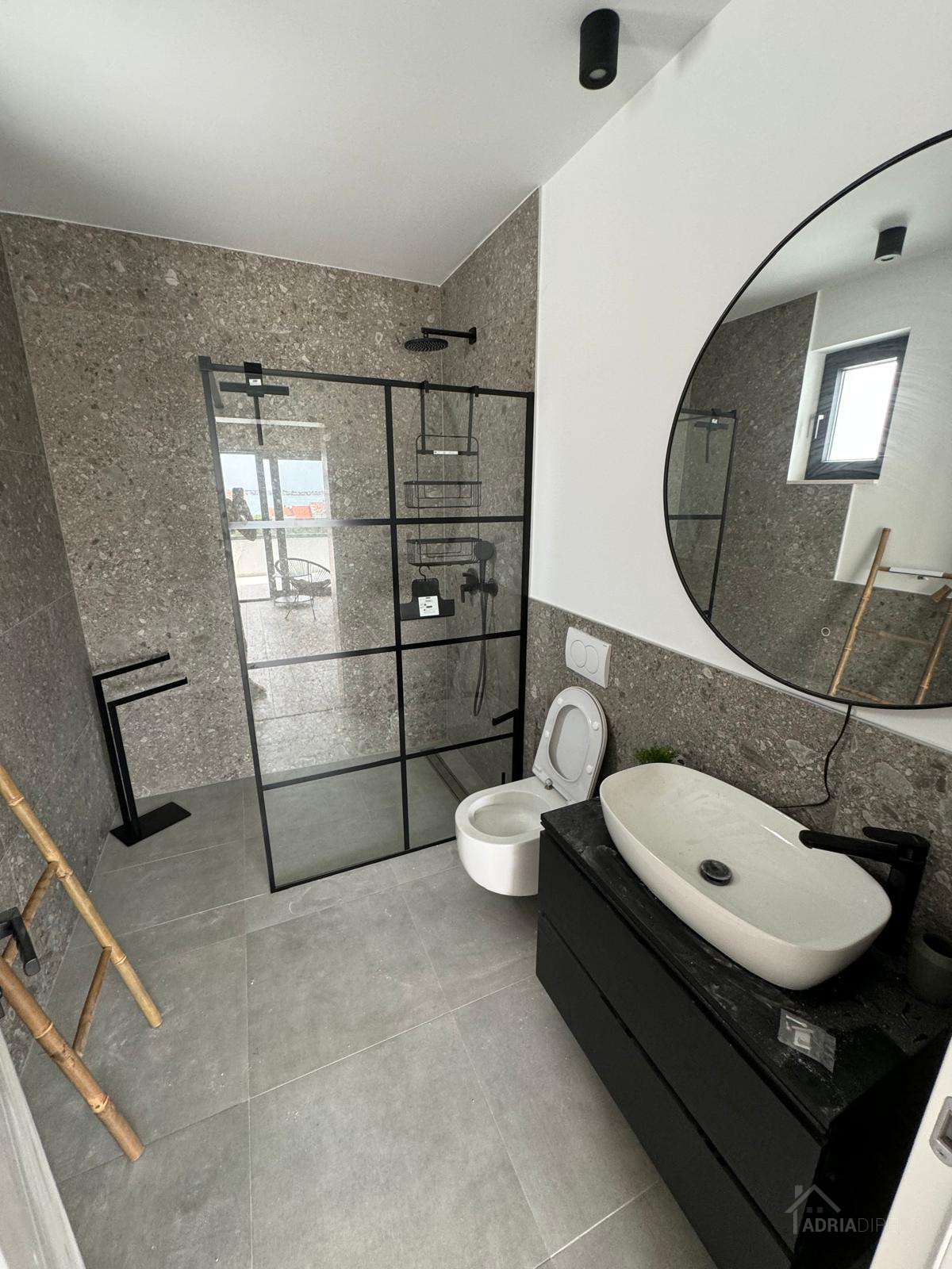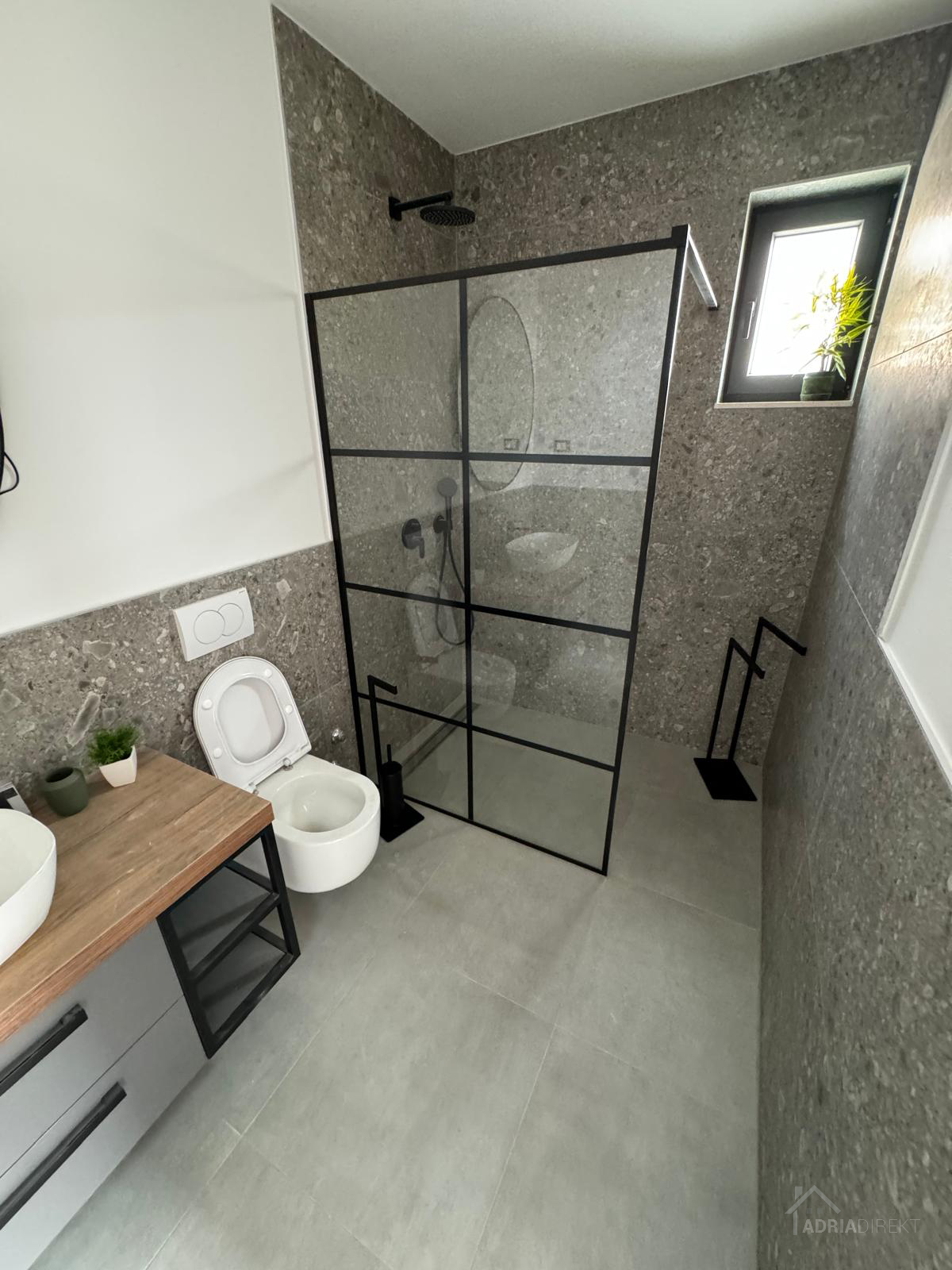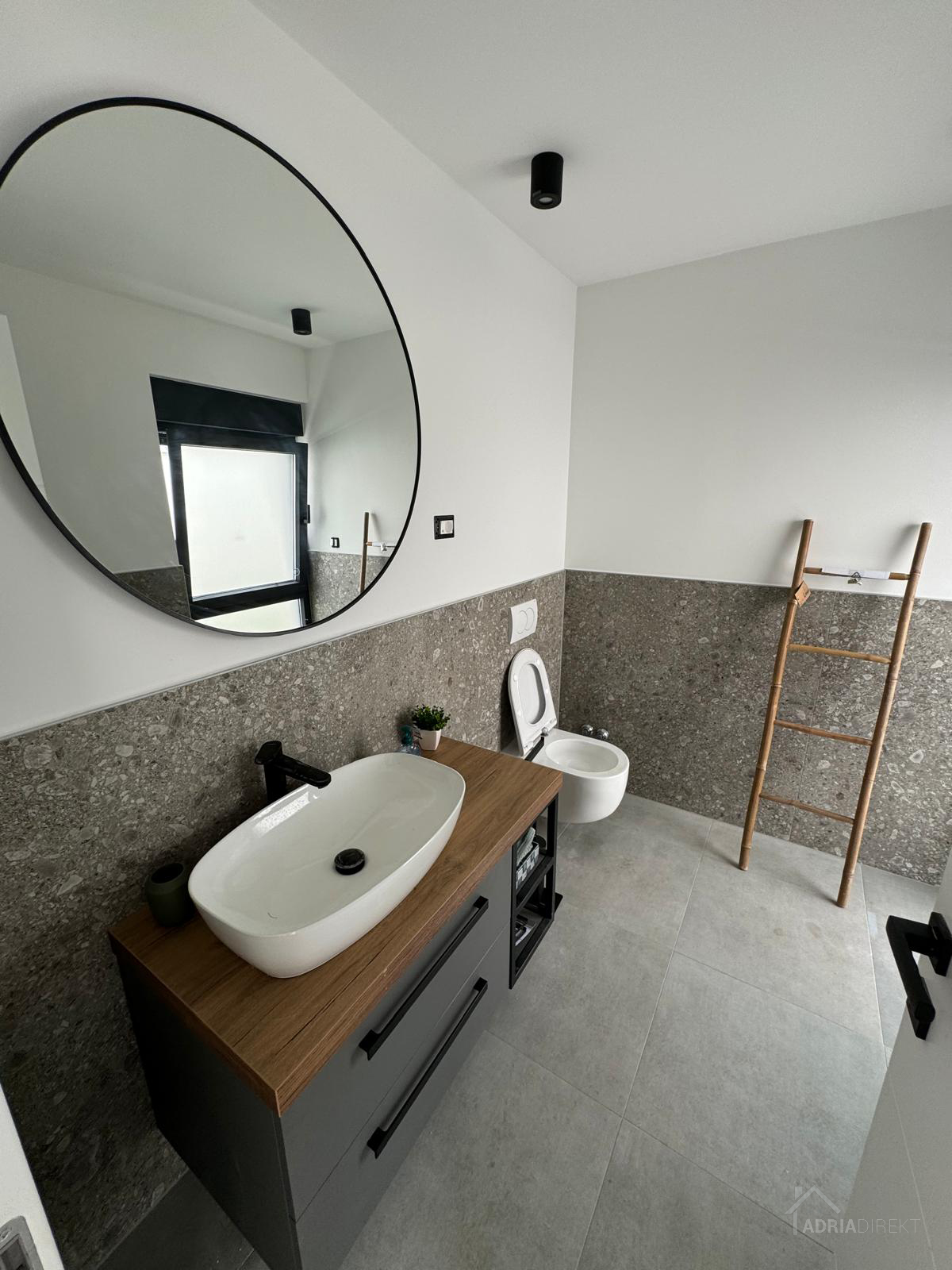Zadar – Vrsi (Mulo), a detached villa with two floors and a living area of 262 m² is for sale, built on a plot of 411 m² in 2023. The villa offers high-quality construction.