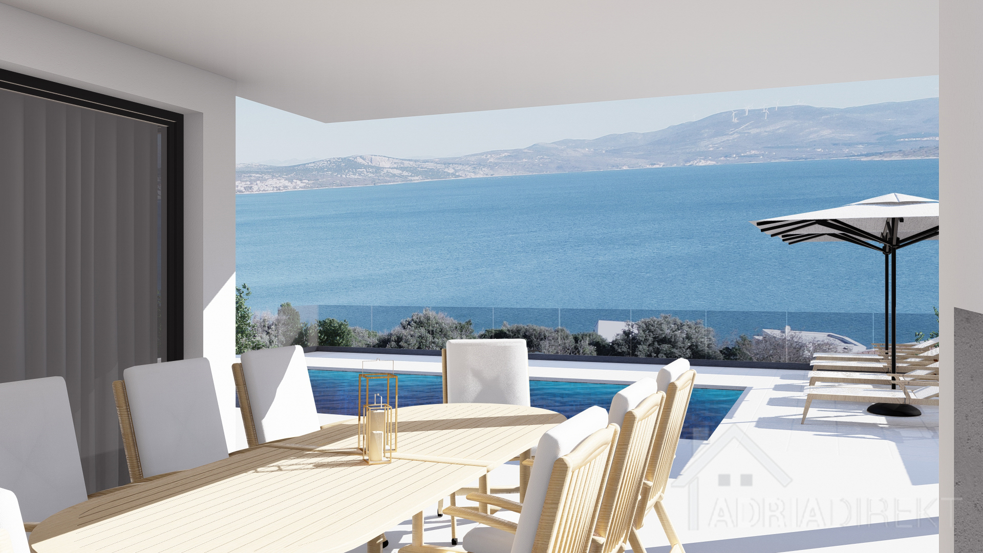 Zadar - Posedarje (Pavlinka), za prodajo je razkošna samostojna hiša s spletno stranjo . 150 m² bivalnega prostora in 313 m² zemljišč, v gradnji, visokokakovostna gradnja.